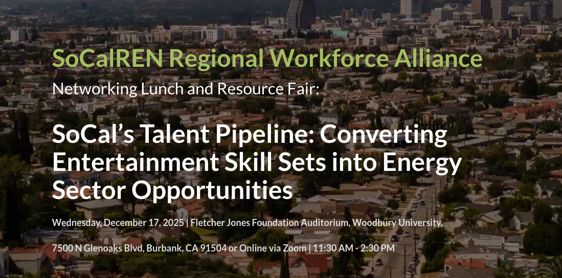 Please join the SoCalREN Regional Workforce Alliance for our quarterly meeting. You may join in person (which will include lunch, and more), or attend virtually.